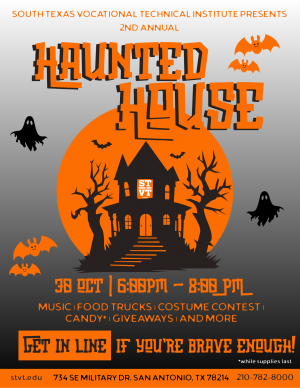 South Texas Vocational Technical Institute is hosting its Annual Haunted House. Dare to enter… if you’re brave enough! STVT invites ...