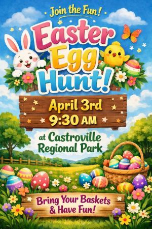 Join us for a free Egg Hunt at Castroville Regional Park! Bring baskets! Kids will be separated by age.