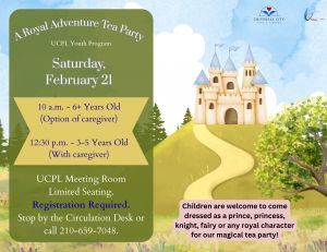 Step into a magical kingdom at UCPL's Royal Adventure Tea Party! Children are invited to come dressed as a prince, ...